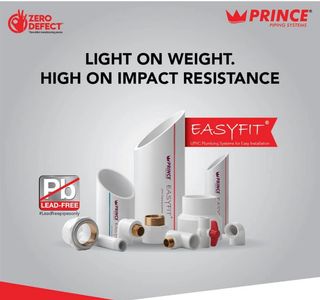 Prince Easyfit UPVC plumbing system is a ‘LEAD FREE’ solvent weld system designed for distribution of potable water that is technically superior and offers many advantages over conventional G.I. Piping system. This system is easy to install and offers a long service life. It is used mainly for cold water application in residential, Commercial and public complexes..